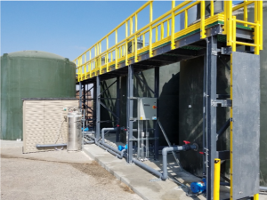 ClearBlu designed a retrofit to the system that used the existing lift station and rotary screen. ClearBlu installed an automatic pH unit on the existing pre-treatment pad with the rotary screen.